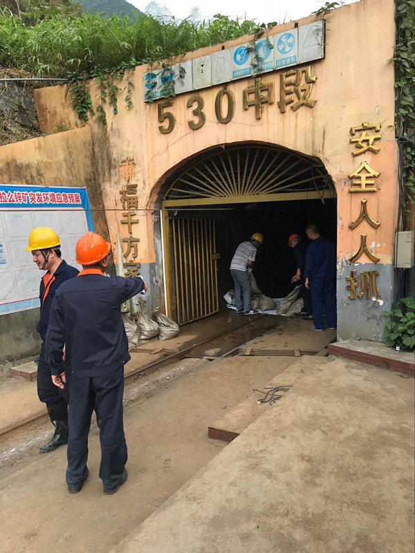 上午9时,在拉么锌矿统筹安排演练中,530m窿门口排水涵洞发生堵塞,大量矿井涌水从涵洞口溢出,矿井涌水沿公路路面流往拉么溪,拉么溪面临污染。