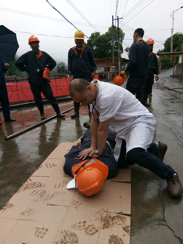 此次应急演练模拟的事故场景是,530m-500m主运输巷交叉道发生触电事故,造成一名工人昏迷,同行的工人发现后迅速跑至530m爆破材料临时库报警,并启动人员定位卡应急救援按键。收悉救援信号后,矿部按照演练程序立即逐级启动应急响应,各指挥部成员及救援队伍协同配合,立即采取紧急措施,并对受伤人员进行救治。11时,圆满完成救援任务。