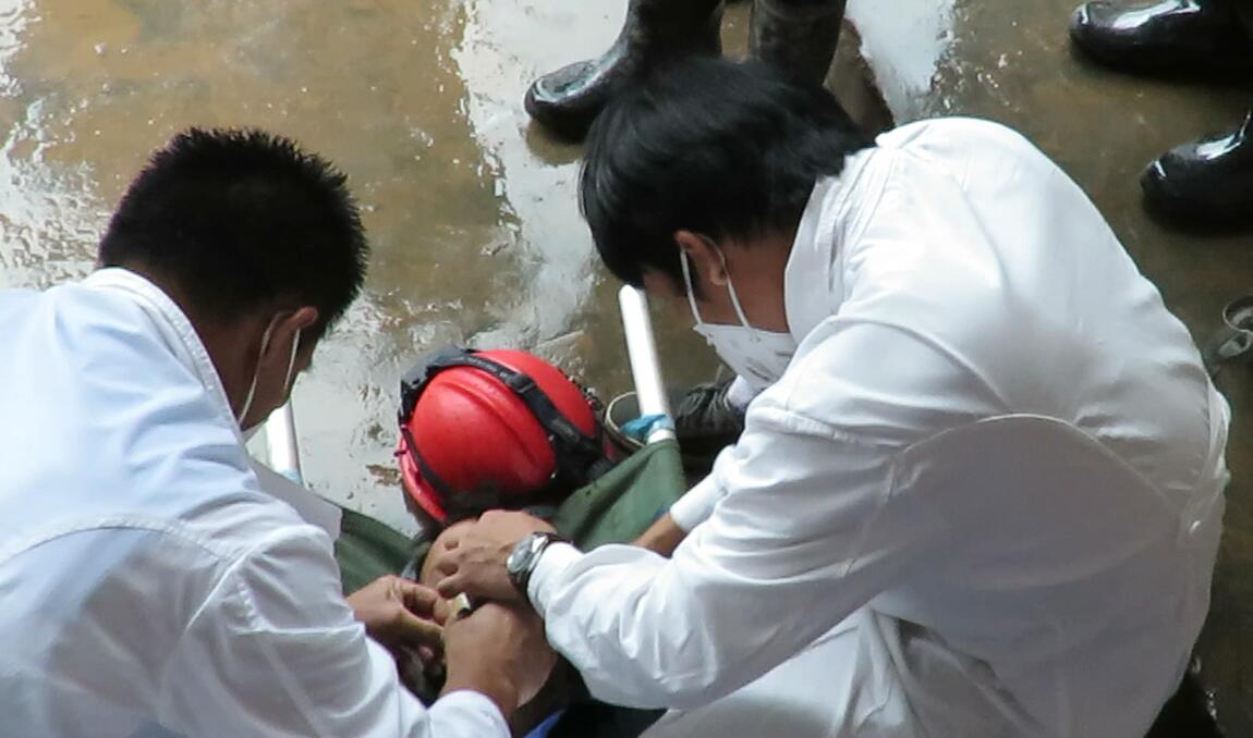 本次救援演练情景为调度室接到井下发生中毒窒息事故的汇报后,立即启动应急救援预案,在指挥长覃安宁(北山公司总经理)的统一指挥下,各救援小组赶赴现场开展应急救援工作。演练过程经过采取有效的应急处置措施,成功对井下3名中毒窒息的矿工进行救援,避免事故造成人员重大伤亡及财产损失,演练取得圆满成功。此次演练参演人员达60余人次,动用救护车、皮卡车、风机、自救器等应急装备、物资达100余件。