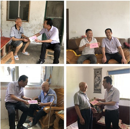 6月26日下午,金河公司党委书记李绍忠、综合部部长胡又月等一行对覃少锦、陈维佳等12名困难党员进行走访慰问,在中国共产党成立97周年之际,向他们送上党组织的亲切关怀及节日的祝福。