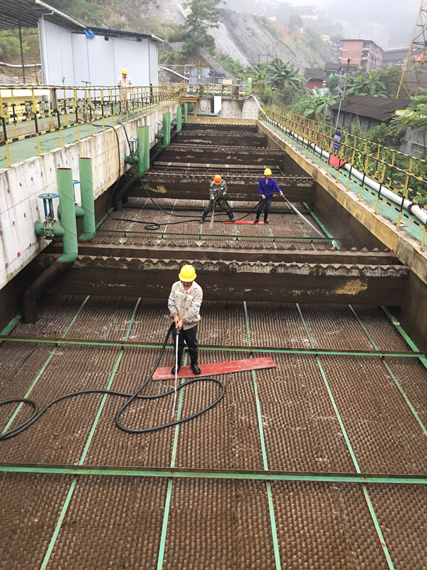 2020年11月1日,拉么锌矿组织对矿井重金属废水深度处理工程进行“体检”,仅用3小时圆满完成斜管沉淀池内14万个斜管清洗工作。此次“体检”,积累了维护环保治理工程的经验,保证了污水处理系统的健康运行,为拉么锌矿良性发展保驾护航。