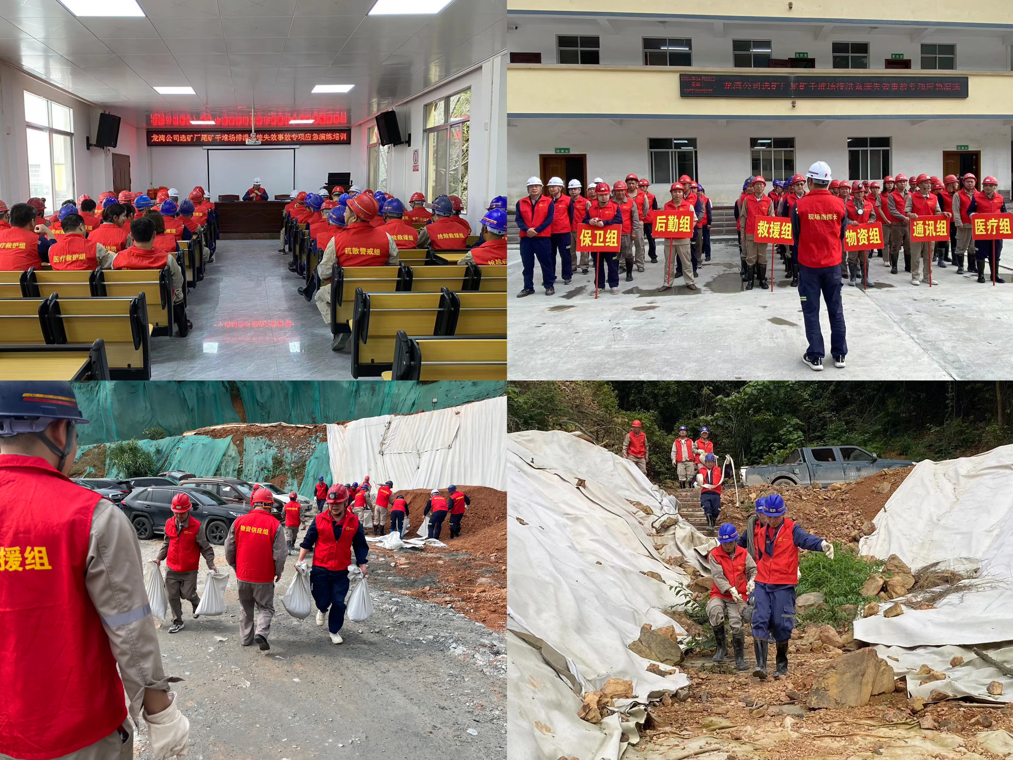 为切实提高尾矿干堆场应对汛期突发事件的安全、环保应急处置能力,切实防范化解汛期尾矿干堆场安全风险,确保尾矿干堆场安全度汛。2024年4月13日,龙湾公司开展选矿厂尾矿干堆场排洪系统失效事故专项应急演练。