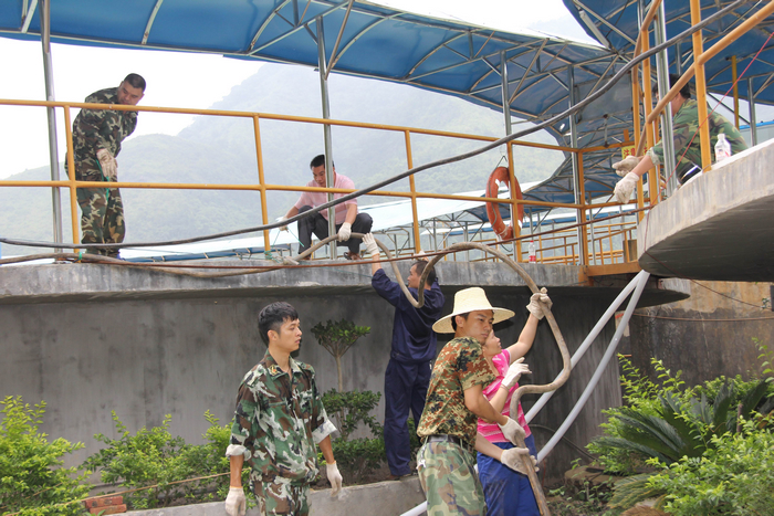 早上8时整,第二党支部全体党员及入党积极分子在党支部书记的带领下,前往废水处理厂牵拉安装电缆线。该电缆线是井下外排水治理工程中的给药系统设备动力线,工程的进度直接影响到井下泵站的排水工作。