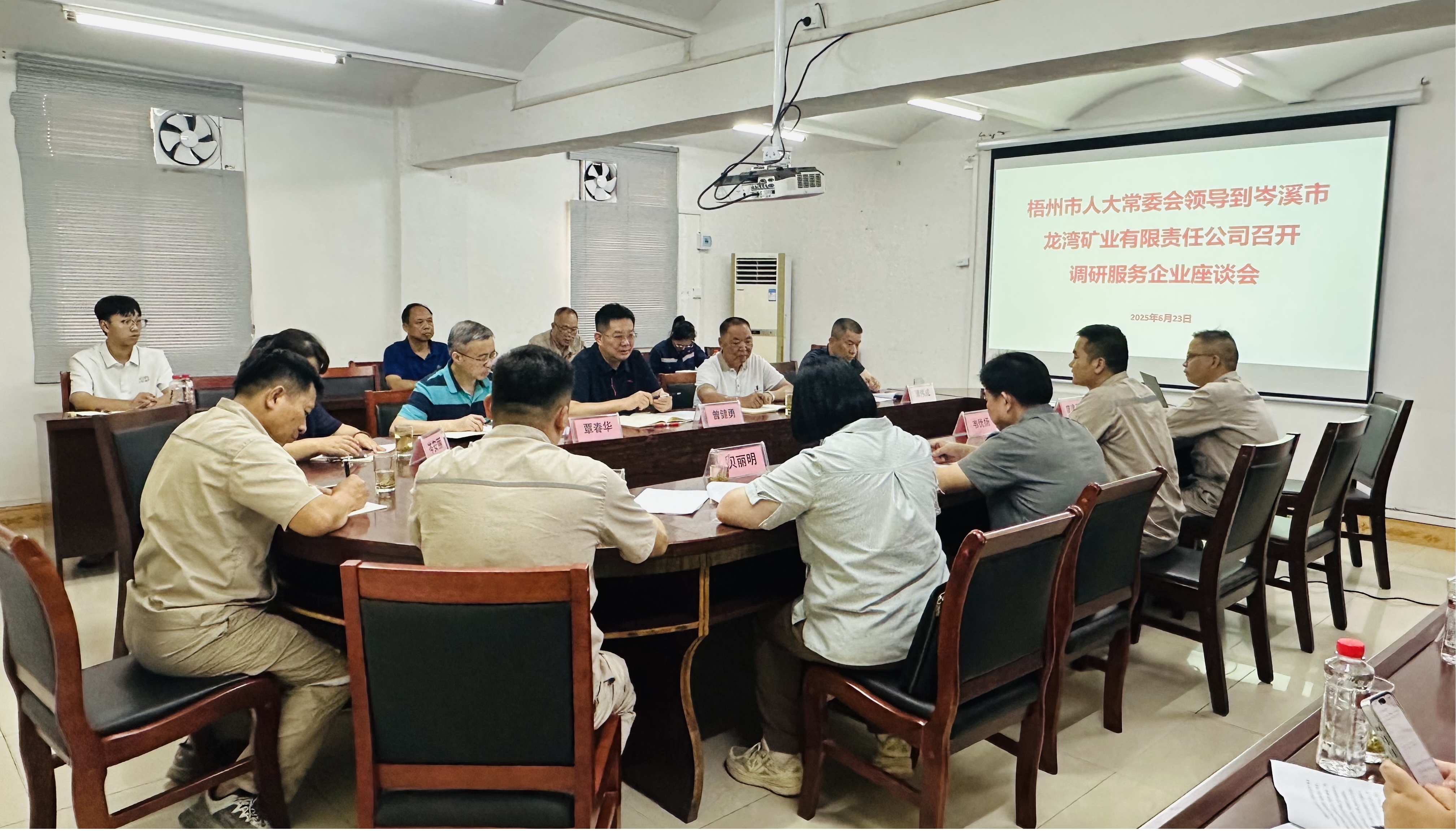 2025年6月23日下午,梧州市人大常委会副主任曾健勇带队到龙湾公司开展重点企业调研服务活动。梧州市人大常委会副秘书长张志泉、人大法制委副主任委员覃春华、市人大法制委办公室主任、常委会法工委备案审查科科长谭伟成、岑溪市人民政府副市长贝丽明及岑溪市科技和工业信息化局、自然资源局等领导参加调研,龙湾公司总经理韦优扬、副总经理廖建平等领导陪同调研。