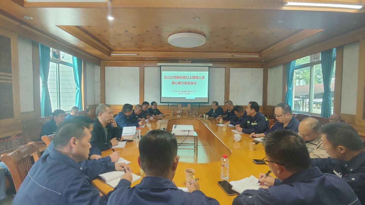 2025年10月23日,北山公司在三楼会议室召开副科级以上管理人员凝心聚力动员会议。金河公司党委书记李绍忠主持会议并作动员讲话,北山公司总经理韦伯韬提出具体工作要求。
