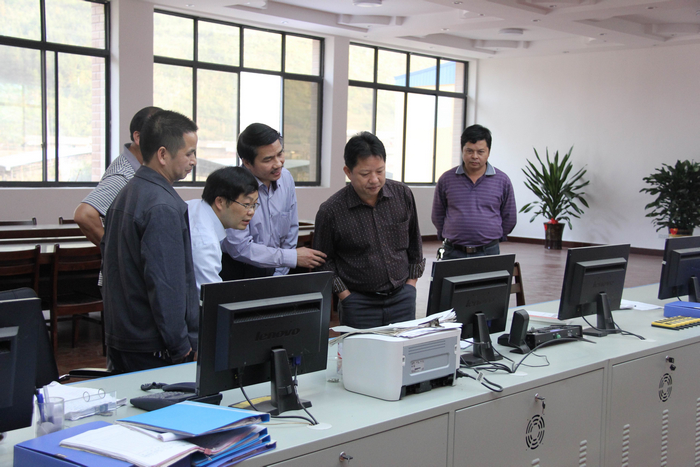 6日下午,胡碧玉总监在北山公司总经理潘家荣、副总经理唐毓阳、副总经理黄家越的陪同下,先后到坑口车间井口、六大系统监控室、废水处理车间实地查看生产运行情况。每到一处,潘总经理都详细向胡碧玉总监介绍相关情况。