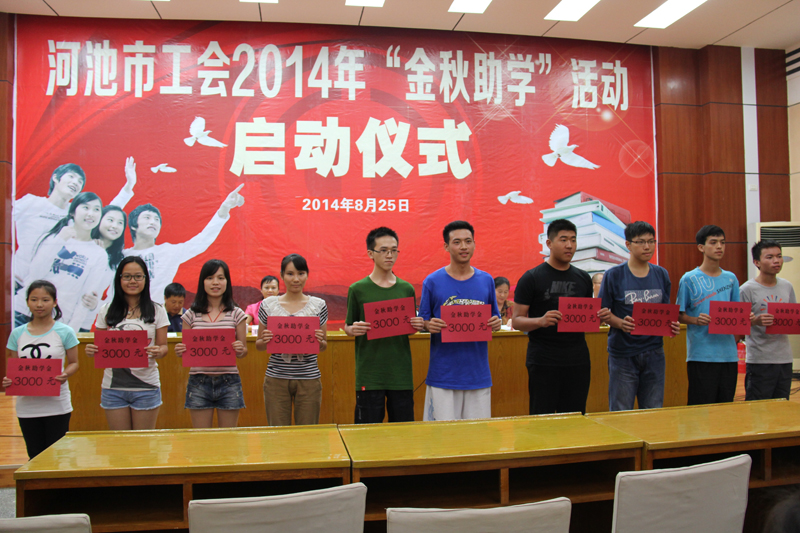金河讯(通讯员 梁莹)8月25日下午,从河池市总工会“金秋助学”启动仪式上传来消息:金河公司(冶化厂、北山公司、拉么锌矿、茂晨公司)共获受助困难职工子女99人,其中大学本科生30人;大学专科生26人;高中生43人,受助金额15.95万元。