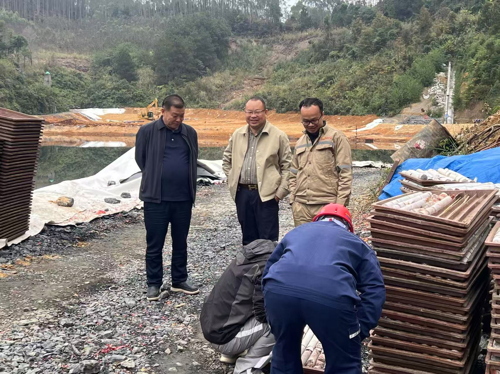 12月16日,金河公司董事长杨再春、总工程师肖绍文、副总经理黄启崇等领导一行莅临北山公司,就探矿工作开展专项检查指导。