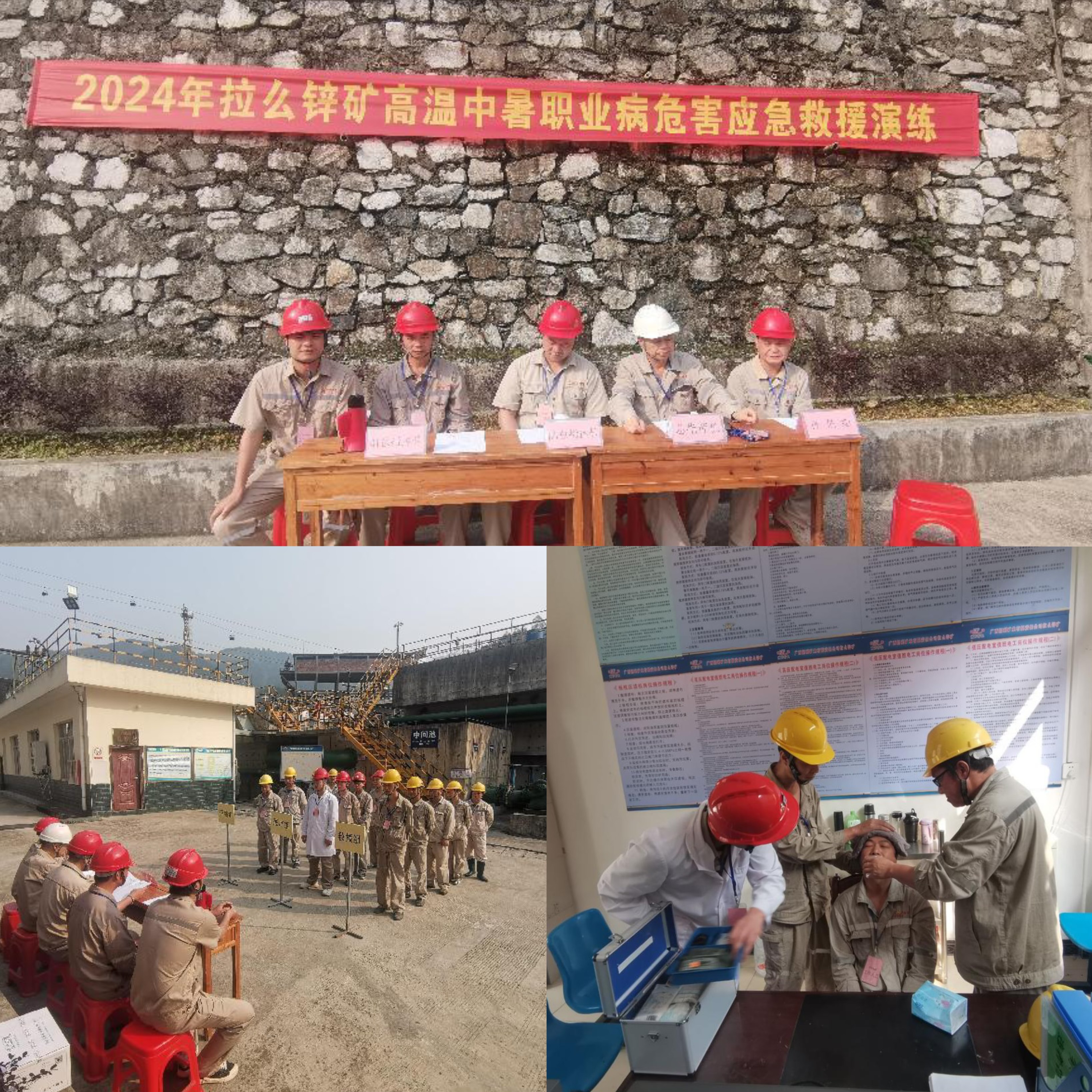 4月28日上午9时,拉么锌矿举行2024年高温中暑职业病危害应急救援演练。拉么锌矿副矿长覃运国担任总指挥,演练由救援组、医疗组、评估组组成。共有20余人参加演练。
