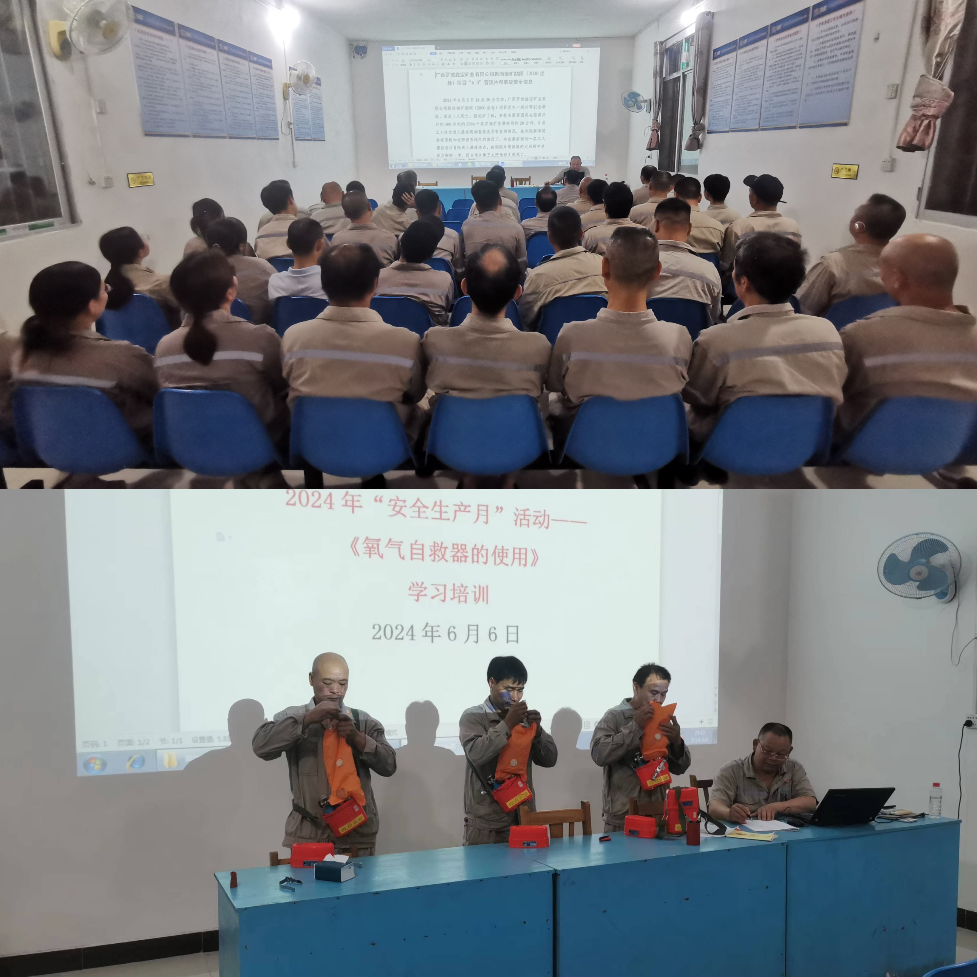 本次培训活动分为事故案例分析安全知识学习和氧气自救器使用培训两个环节。