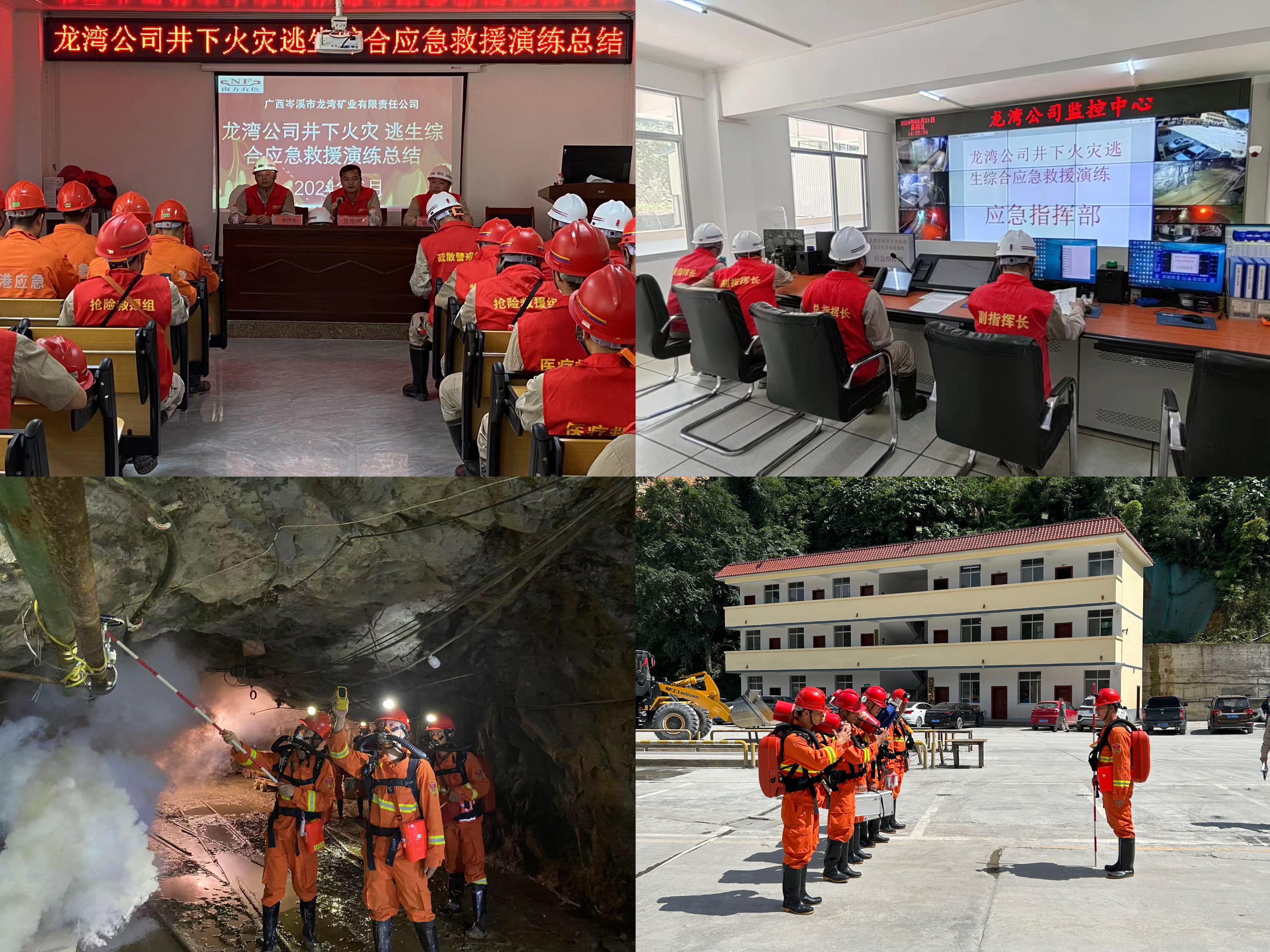 2024年6月22日,龙湾公司组织开展井下火灾逃生综合应急救援演练活动,金河公司安环部覃友能副部长、广西矿山救援大队贵港中队指导员韦心略、龙湾公司领导班子成员、相关科室人员及外包队共50多人参加了演练。