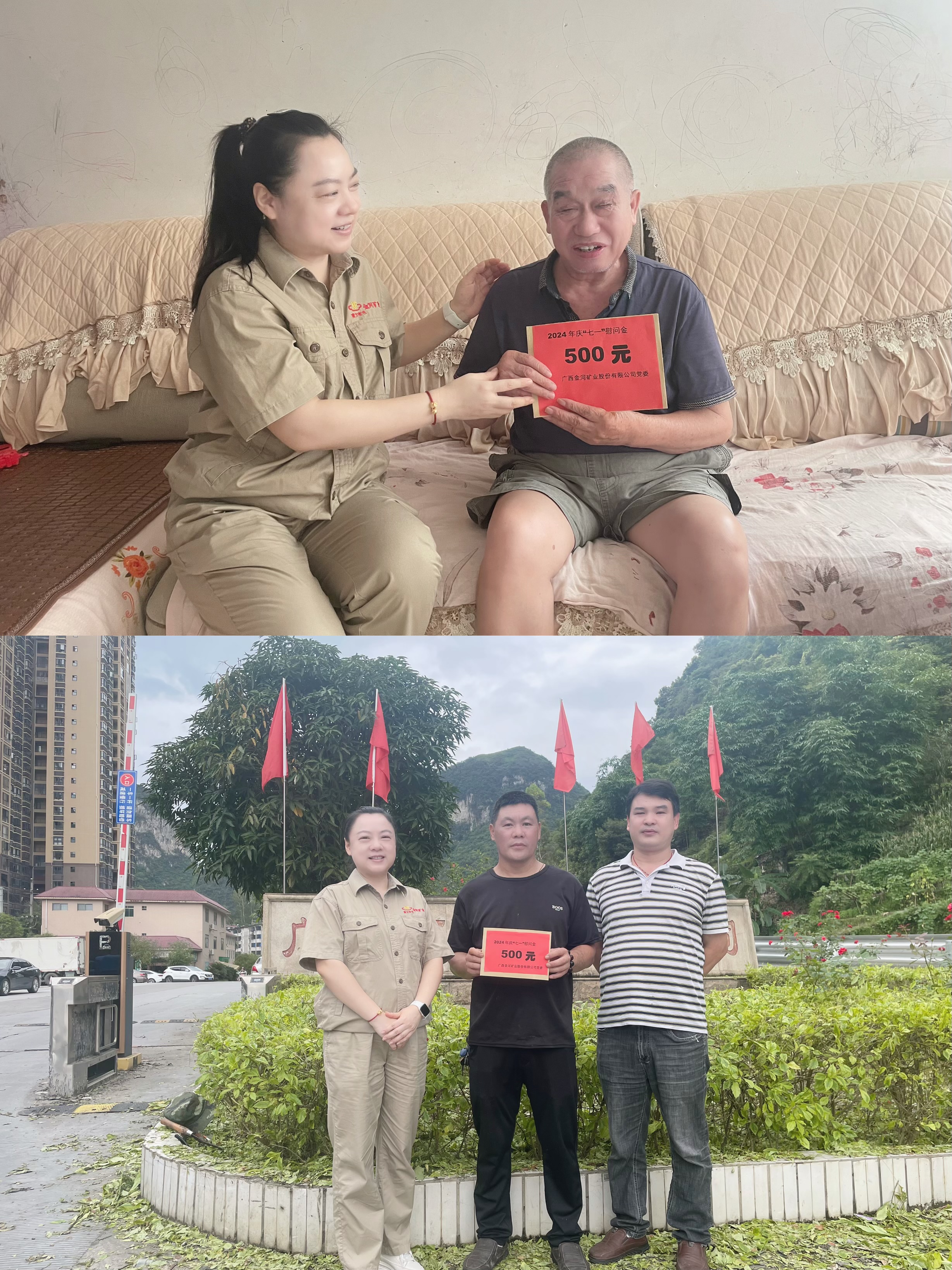 2024年6月28日下午,金河公司党委委员、综合部部长胡又月等一行对韦昌仪、覃启线等2名困难党员进行走访慰问,在中国共产党成立103周年之际,向他们送上党组织的亲切关怀及节日的祝福。