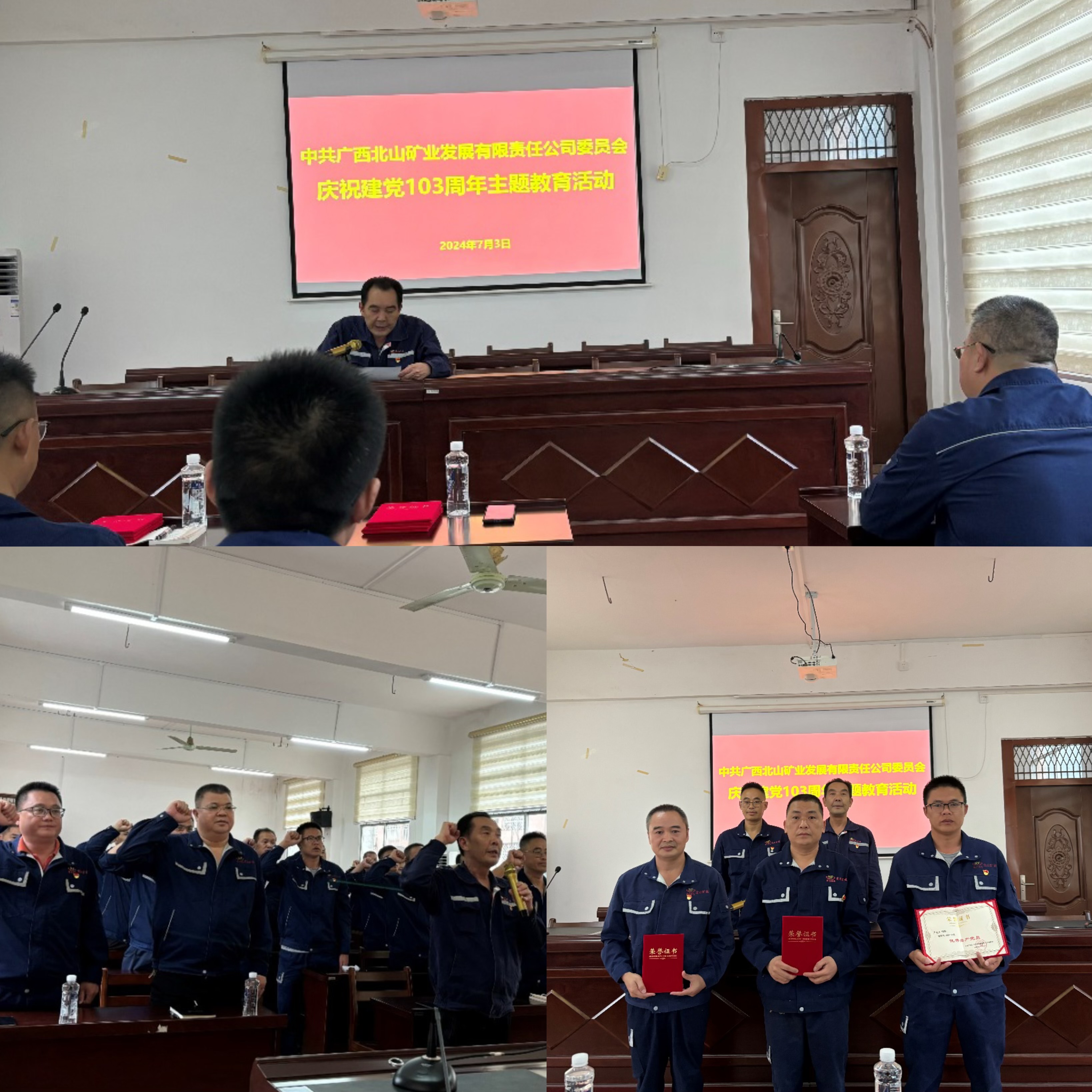 2024年7月3日,北山公司党委召开了庆祝建党103 周年主题教育活动,旨在回顾党的光辉历程,传承党的优良传统,激发员工的爱党爱国热情,出席活动的有金河公司党委书记兼北山公司党委书记李绍忠、北山公司总经理韦伯韬、总工程师闭理楚、北山公司纪委书记兼副总经理黄建宁等30余名党员。