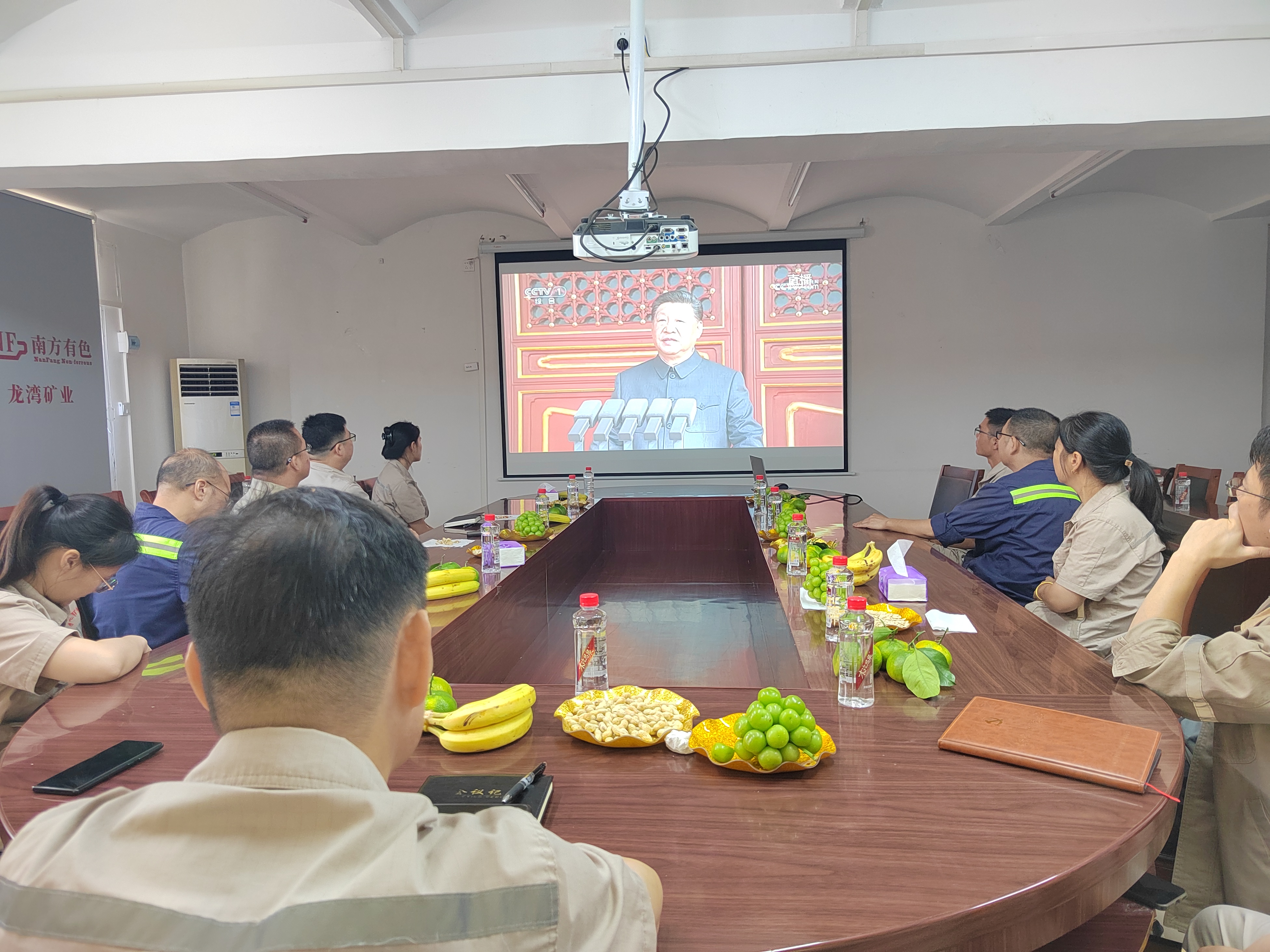 在不影响正常生产的前提下,龙湾公司由副总经理覃忠清带领科级管理干部及党员代表,在公司三楼会议室集中观看了大会直播。收看过程中,全体人员神情专注、认真聆听,现场不时响起热烈的掌声。大家为国家的强大感到由衷自豪,也更加深刻体会到今天和平稳定生活的来之不易。