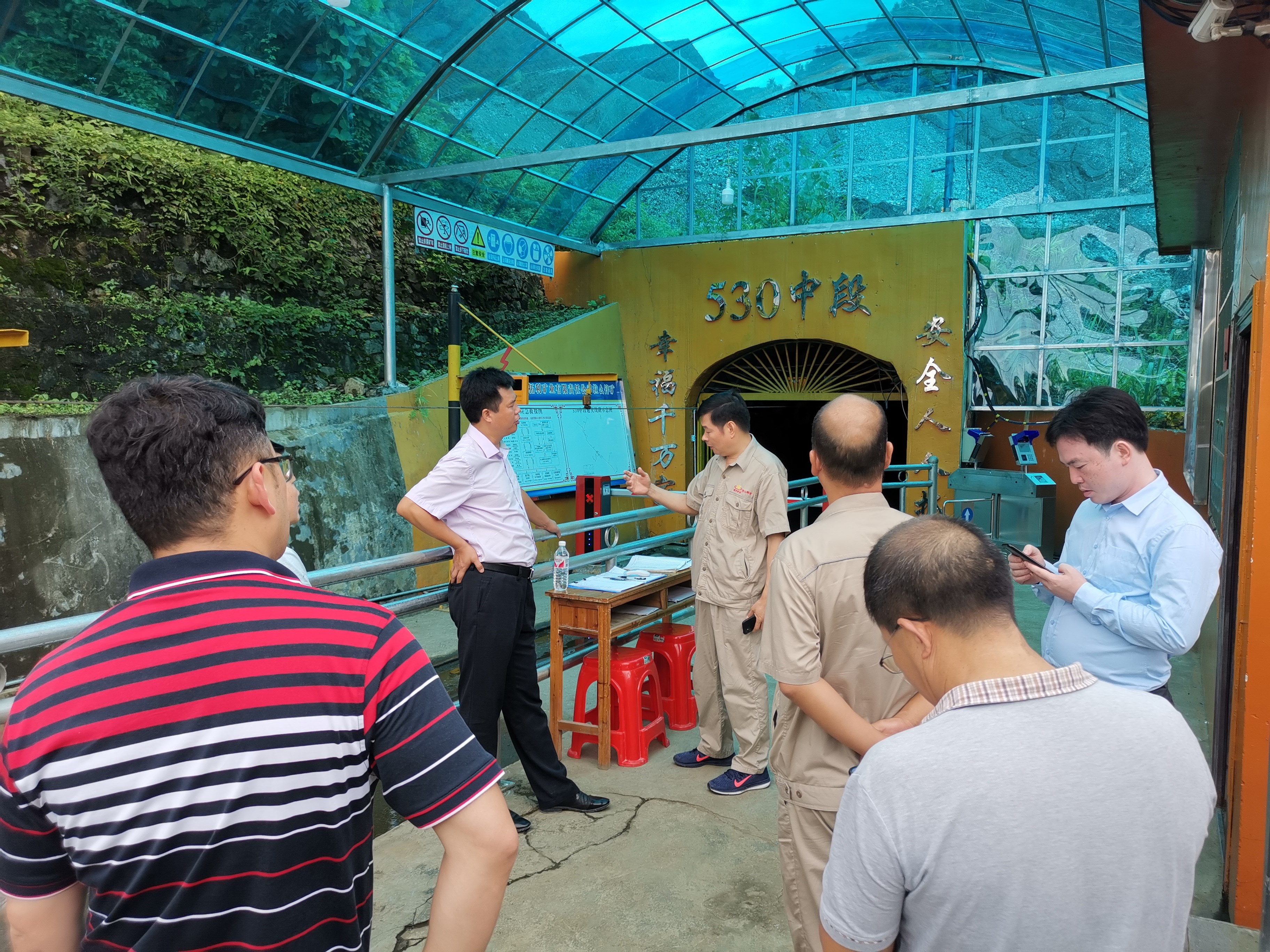 2020年8月12日上午,南丹县常务副县长龙照国率队到拉么锌矿进行调研检查,南丹县自然资源局、县矿业秩序办公室等相关职能部门负责人随行调研。拉么锌矿矿长覃忠清、党委书记蓝标东陪同。
