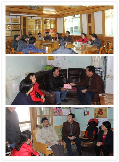座谈会后,河池市总工会调研组一行到覃海松、梁仁东两位困难职工家庭进行走访慰问。