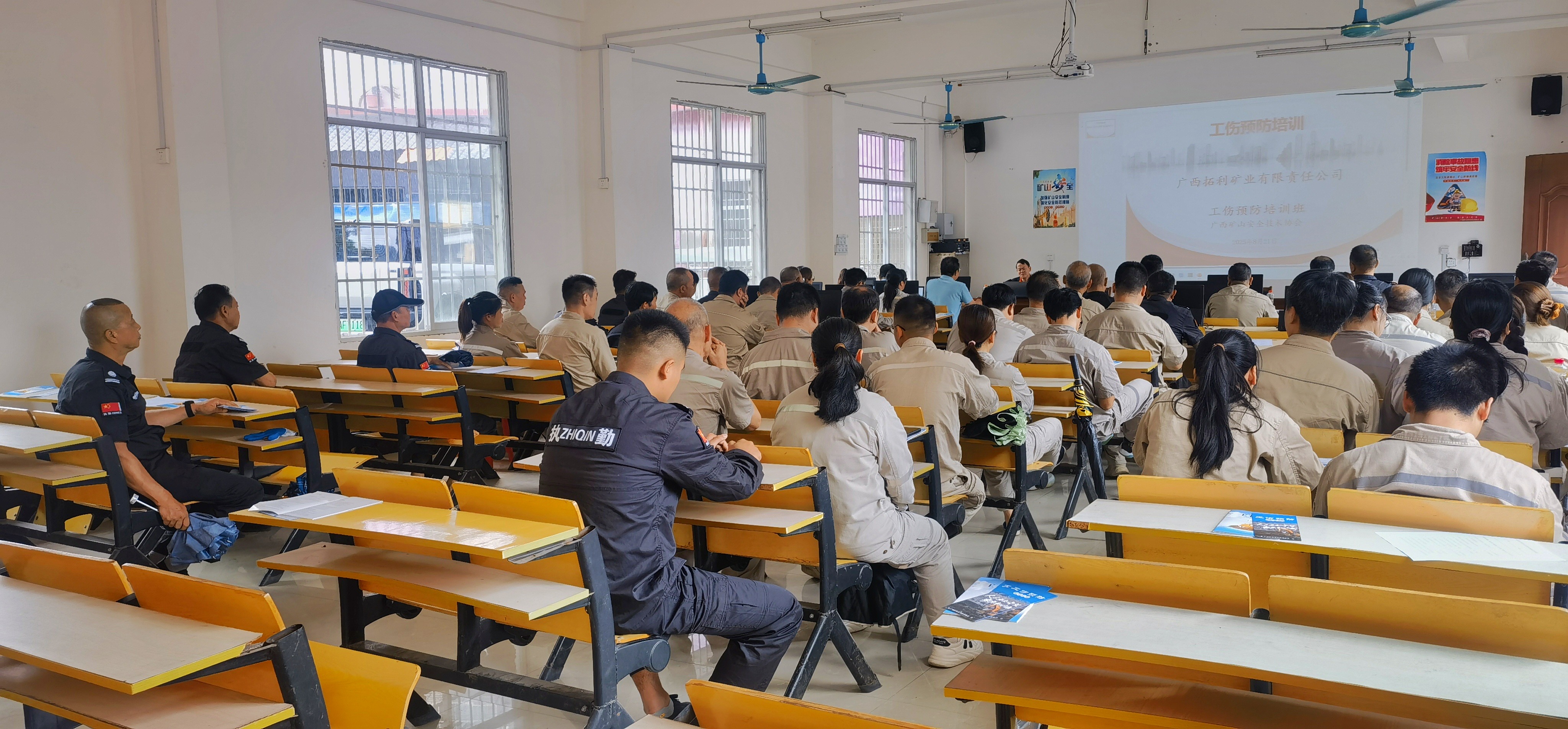 2025年8月21日,广西矿山安全技术协会一行5人在副会长黄照的带领下,来到广西拓利有限责任公司给全体职工上了一堂生动的培训课,在三个多小时的培训中,邓永勇采矿高级工程师和霍祥全通风高级工程师生动活泼风趣幽默的演讲,在一阵阵掌声中完美落幕,邓永勇以近年来各矿山的安全事故引发的原因及如何预防做了详细的解读,参加培训的100多位学员受益匪浅。通过案例驱动了风险意识的觉醒。霍祥全就如何做好井下通风,做了明确的阐述,引用了日常生活中的常识,通俗易懂。让全体职工提高了防护体系的科学认知。